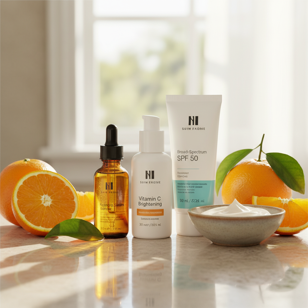 Product Example (Type) Gel cleanser with BHA, Lightweight Retinoid serum, Clay mask (weekly) Cream cleanser, Ceramide-rich moisturizer, Low-dose Retinal cream Foaming cleanser, Niacinamide serum, Gel-cream moisturizer, BHA toner (T-zone)